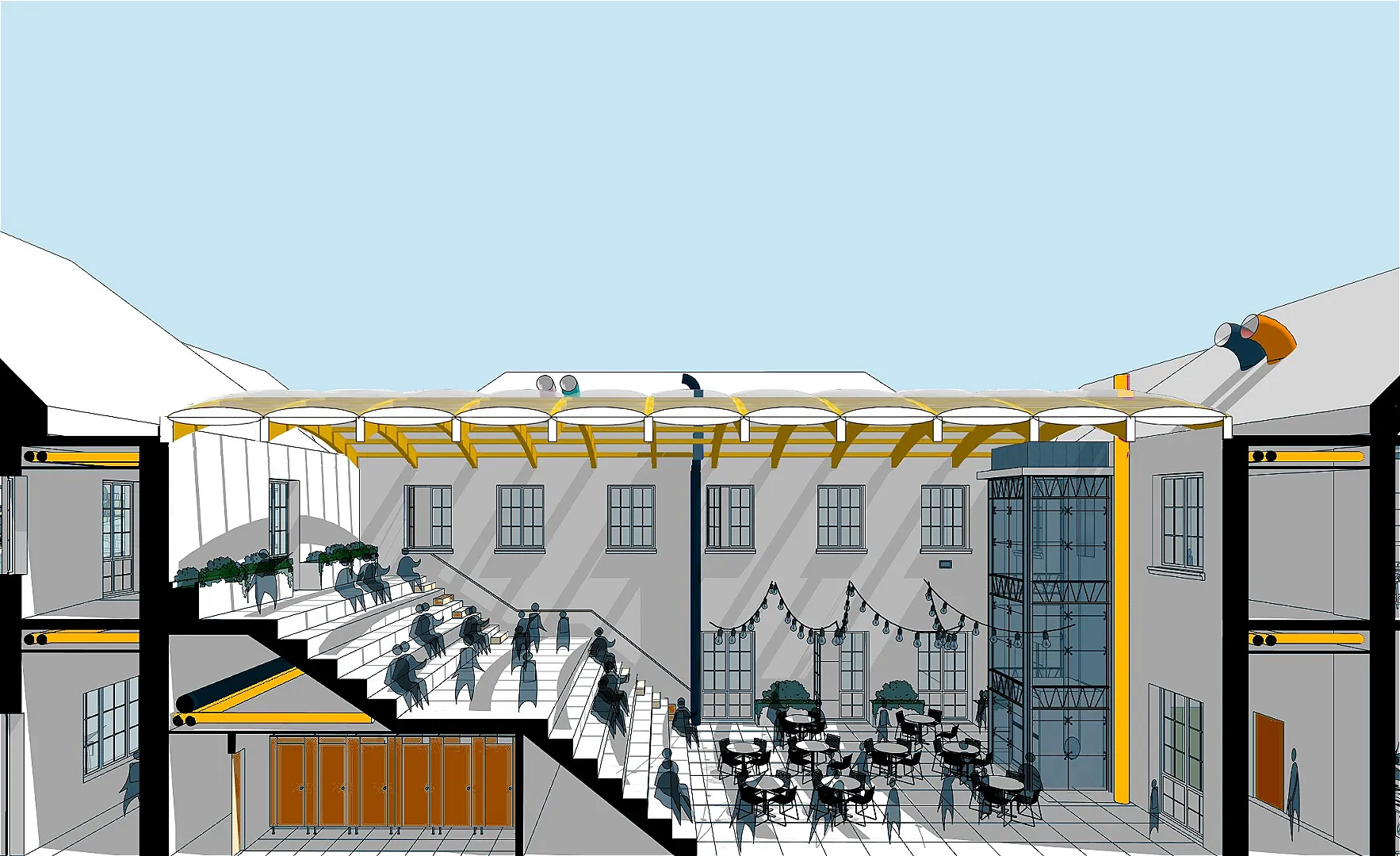 The proposed net zero design embraces sustainability, with plans to convert hard landscaping into soft, green spaces and transform the external courtyard into a covered area with trees and plants to enhance the learning experience.