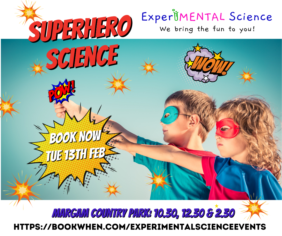 Llun 16 Chwef 2026 10:00Wedi bod eisiau tyfu a chwyddo pethau, gwneud slym sy’n ymestyn am ddyddiau, neu weld gwrthrychau’n symud heb eu cyffwrdd? Yr hanner tymor hwn, rydyn ni’n troi plant chwilfrydig yn Wyddonwyr Archarferwyr Ifanc 🧪⚡ Mae ein Gweithdy Gwyddoniaeth Archarferwyr 1 awr yn llawn eiliadau WOW, hwyl flêr a phrofiadau sy’n edrych fel hud… ond mewn gwirionedd yn cael eu pweru gan wyddoniaeth! Paratowch i: 💥 Gwneud i bethau dyfu a chwyddo o’ch blaen 🧪 Creu slym sy’n ymestyn yn archarferol 🧲 Rheoli hylifau “byw” gan ddefnyddio grymoedd anweledig 🌀 Twyllo’ch ymennydd gyda rhithwelediadau slei 🌬️ Tanio ffrwydradau aer anweledig sy’n taro pethau’n hedfan 😲 Gofyn “SUT wnaeth hynny ddigwydd?!” o leiaf 20 gwaith 👧🧒 Yn addas i blant 5+ oed 📍 Parc Gwledig Margam 📅 Dydd Llun 16 Chwefror ⏰ 10:00am & 12:00pm 🎟️ Llefydd cyfyngedig — rhaid archebu! 👉 Archebwch eich tocynnau yma: https://bookwhen.com/experimentalscienceevents